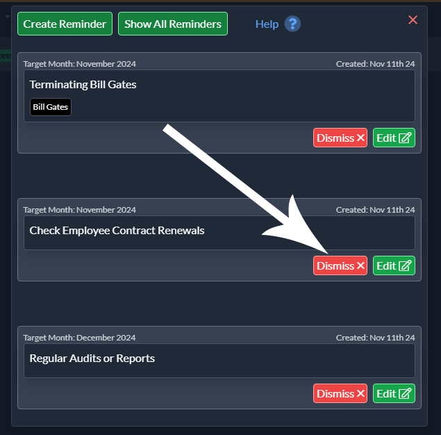 Dismissing a reminder does not mean the task has been completed. It’s a reminder for you to act on the task immediately, either before or after dismissing the reminder.